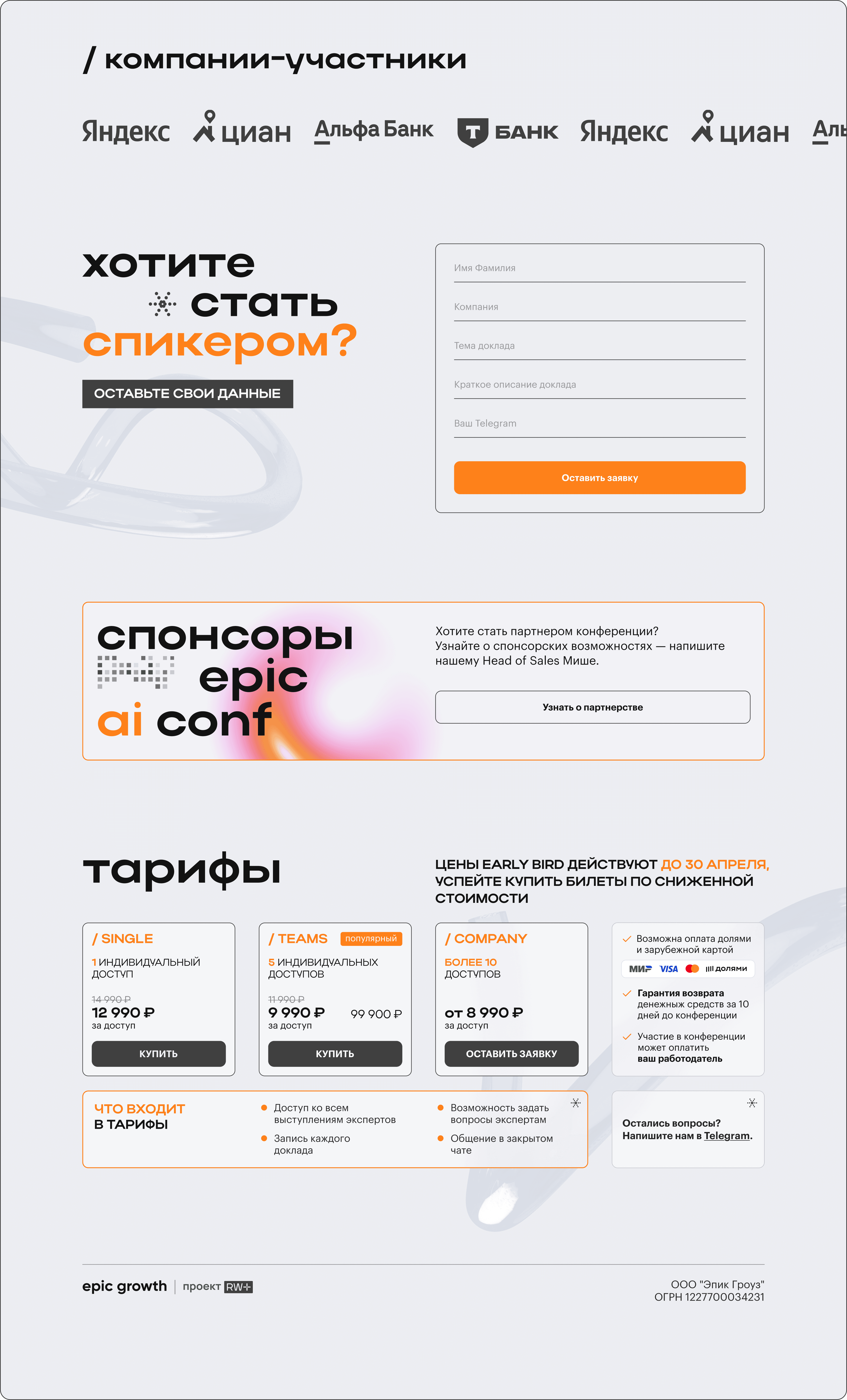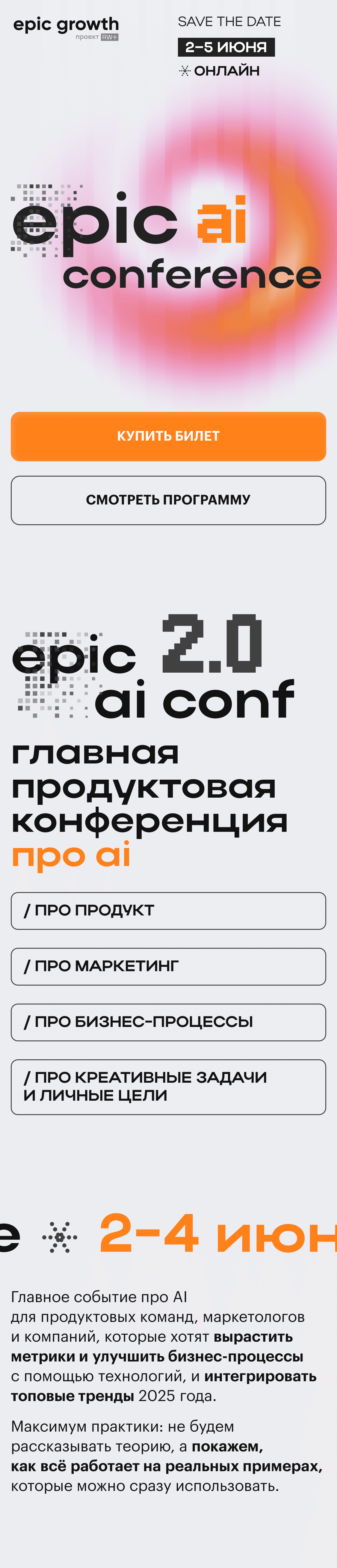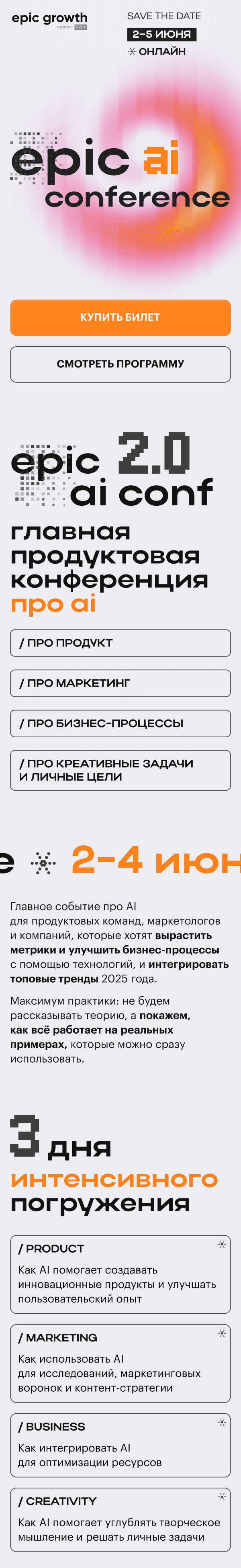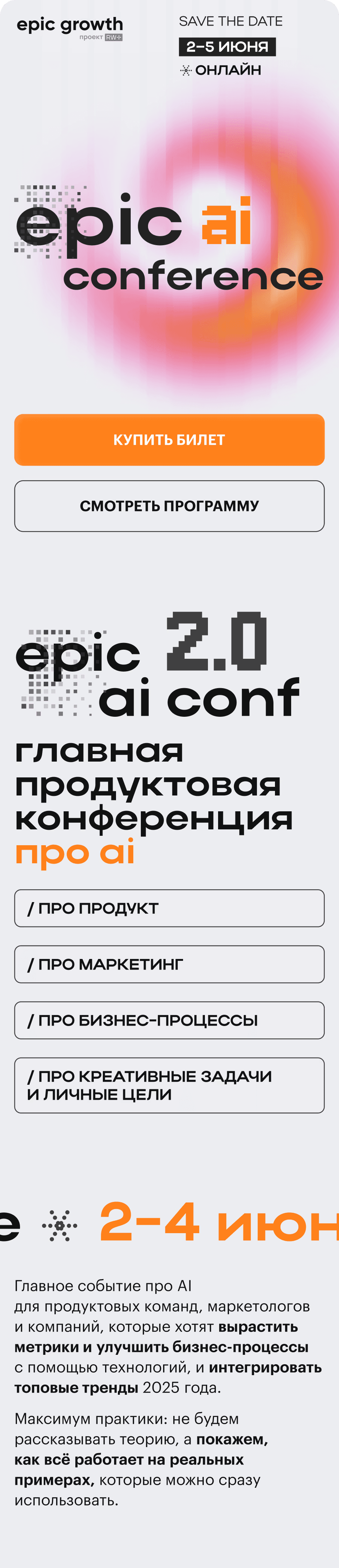 KV и лендинг для epic ai conference