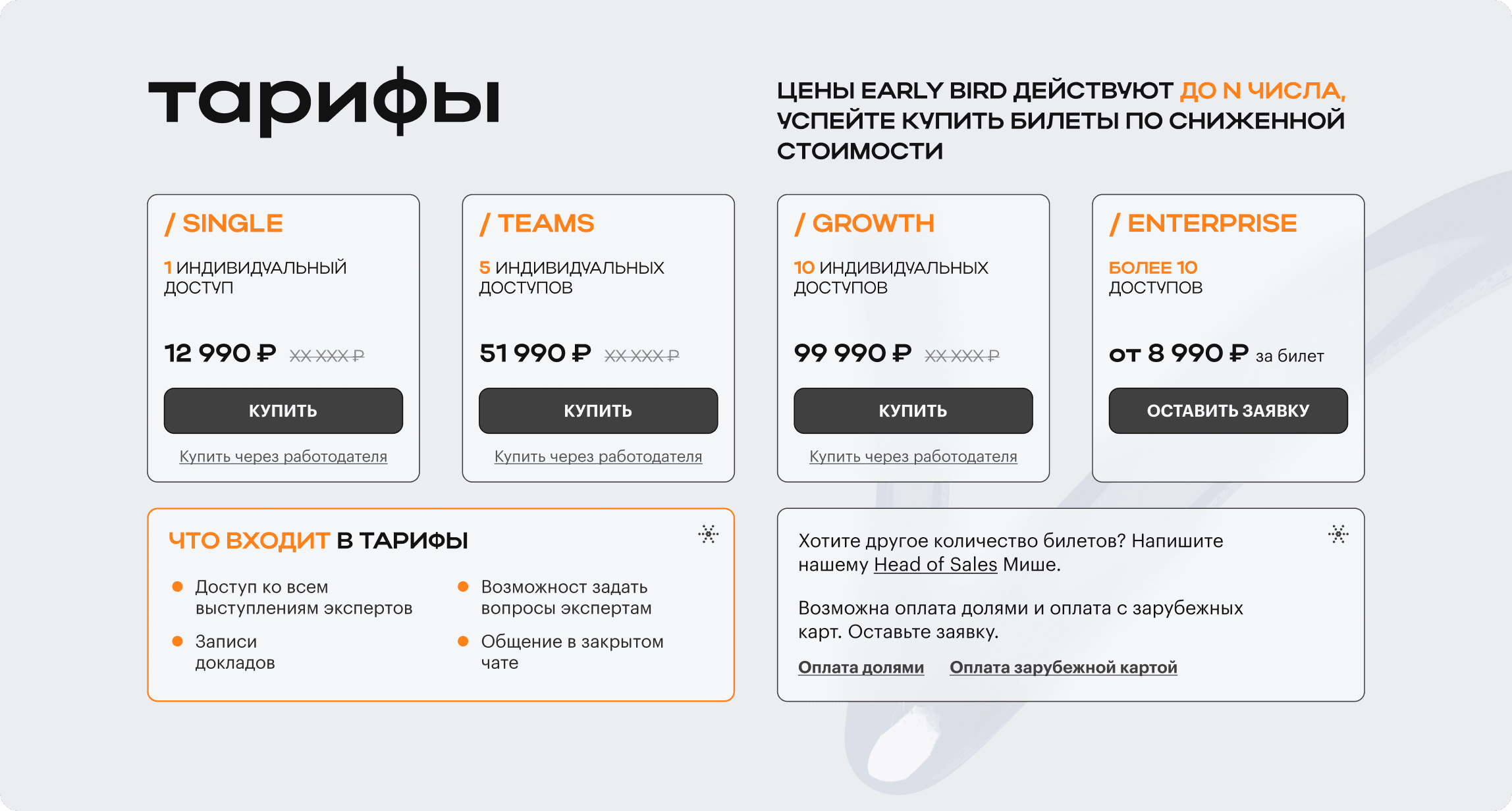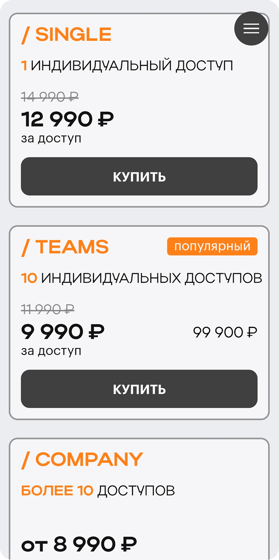 2/ Добавила цену за 1 доступ — так проще сравнить тарифы и оценить выгоду.