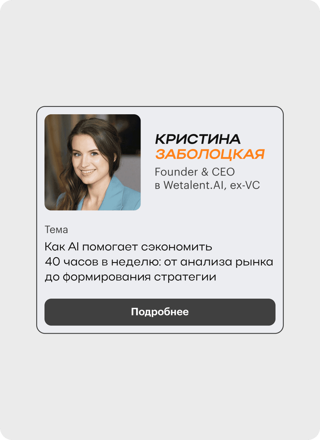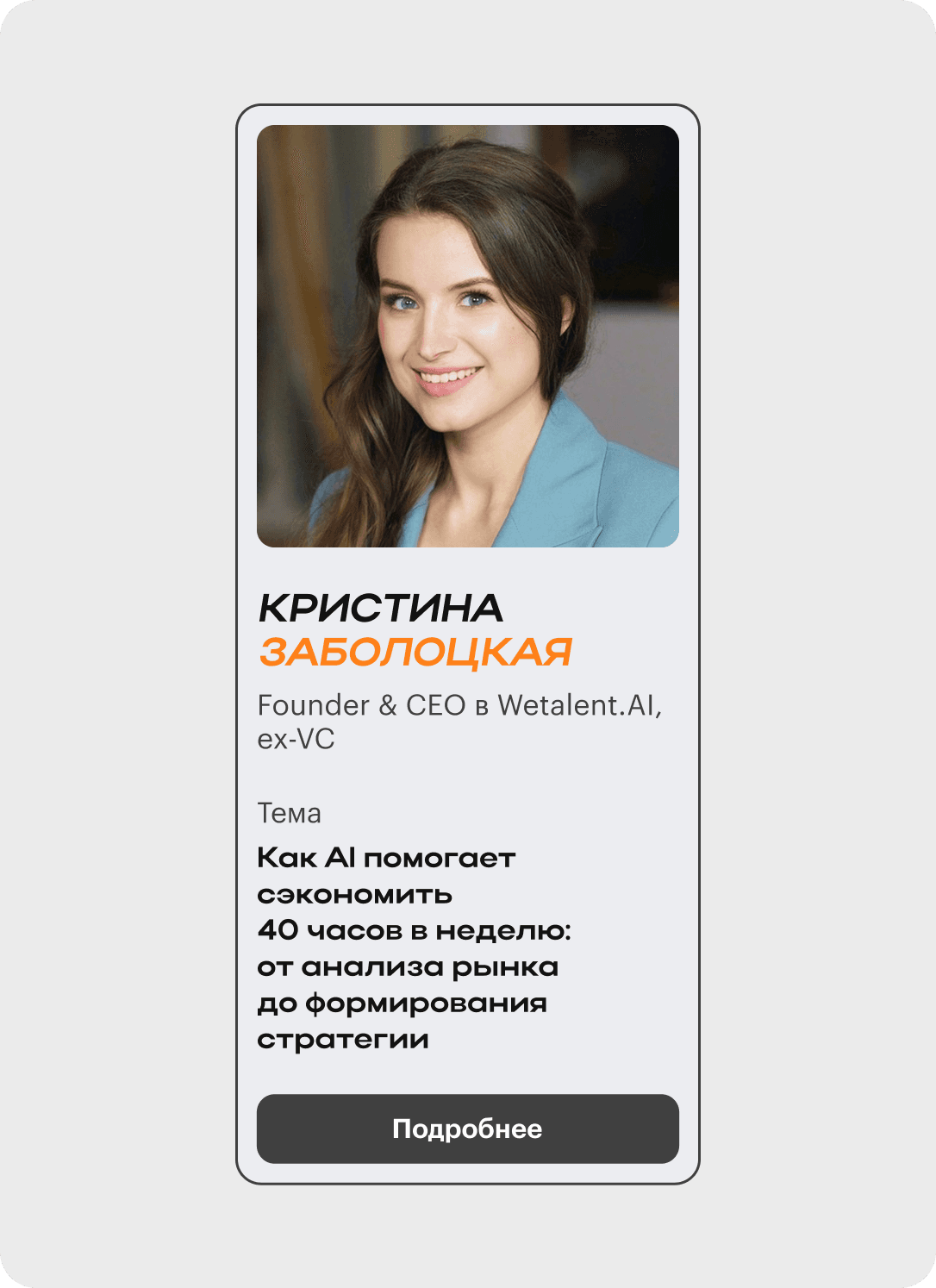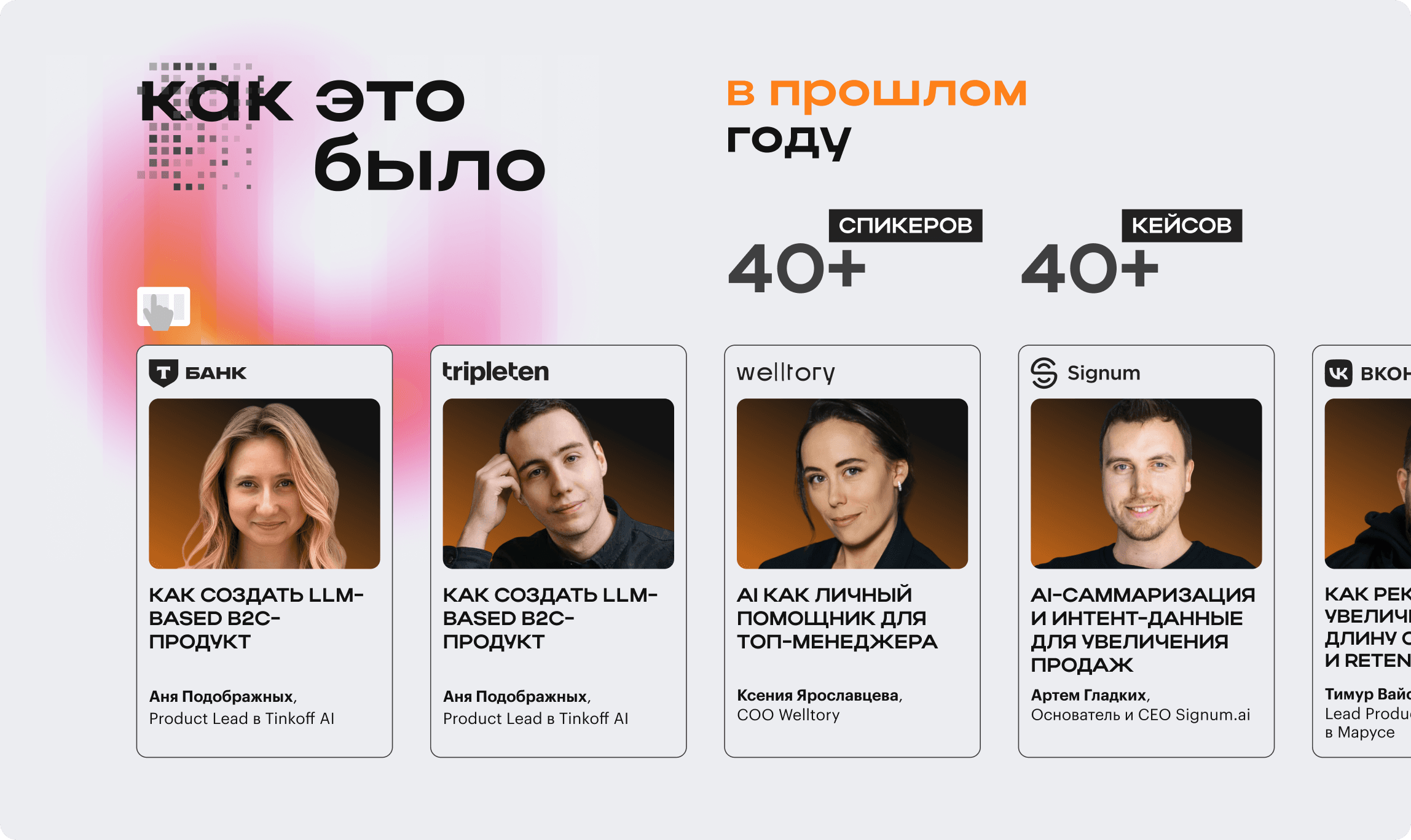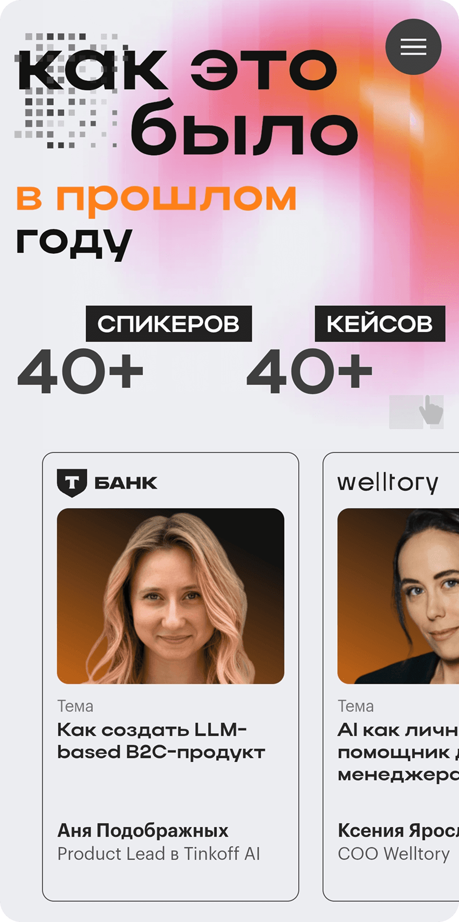 Для быстрого сканирования топовых компаний добавила их логотипы в карточки спикеров.