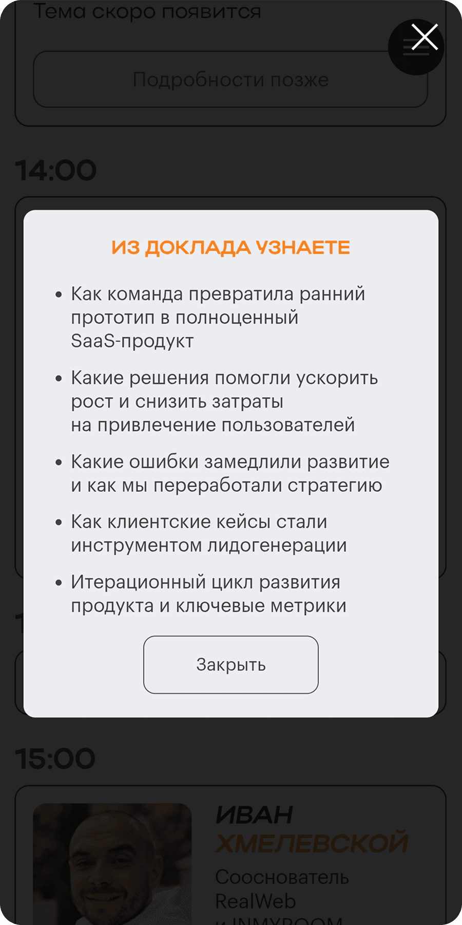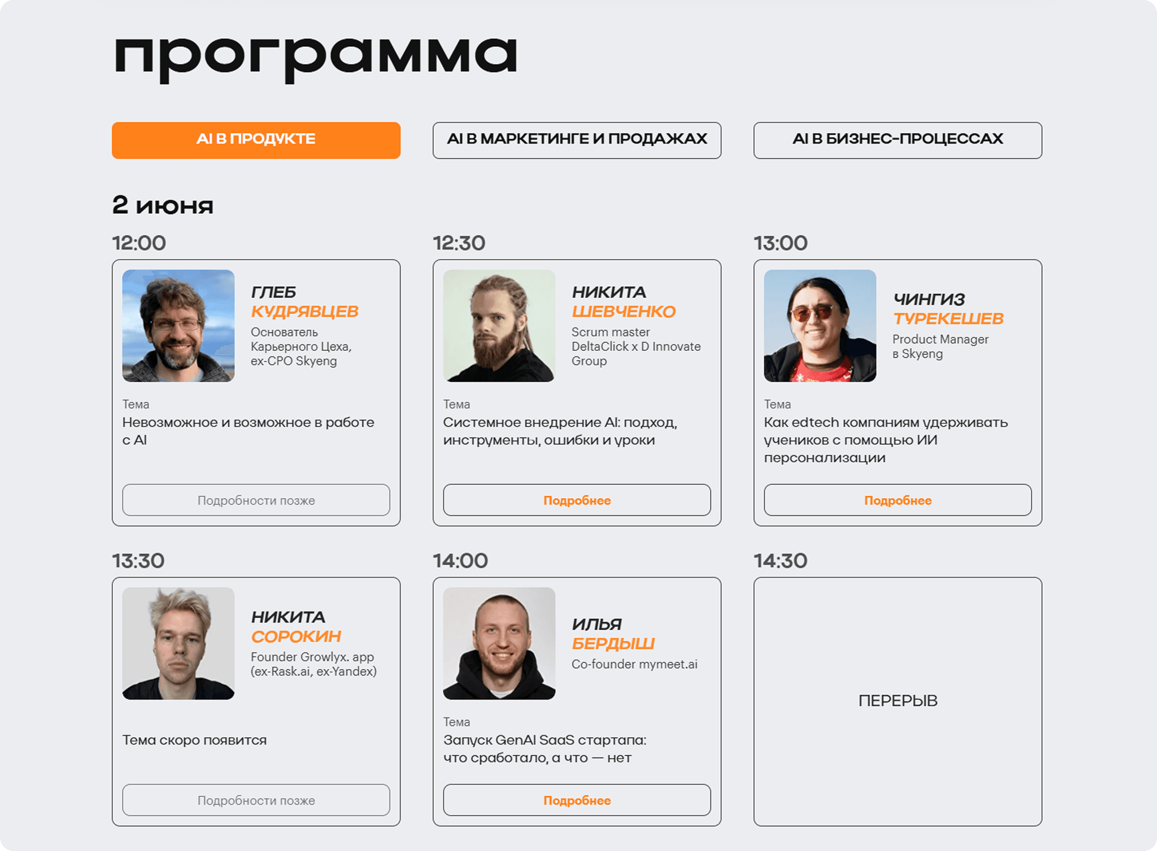 Переверстала карточки спикеров в блоке с программой. В результате: