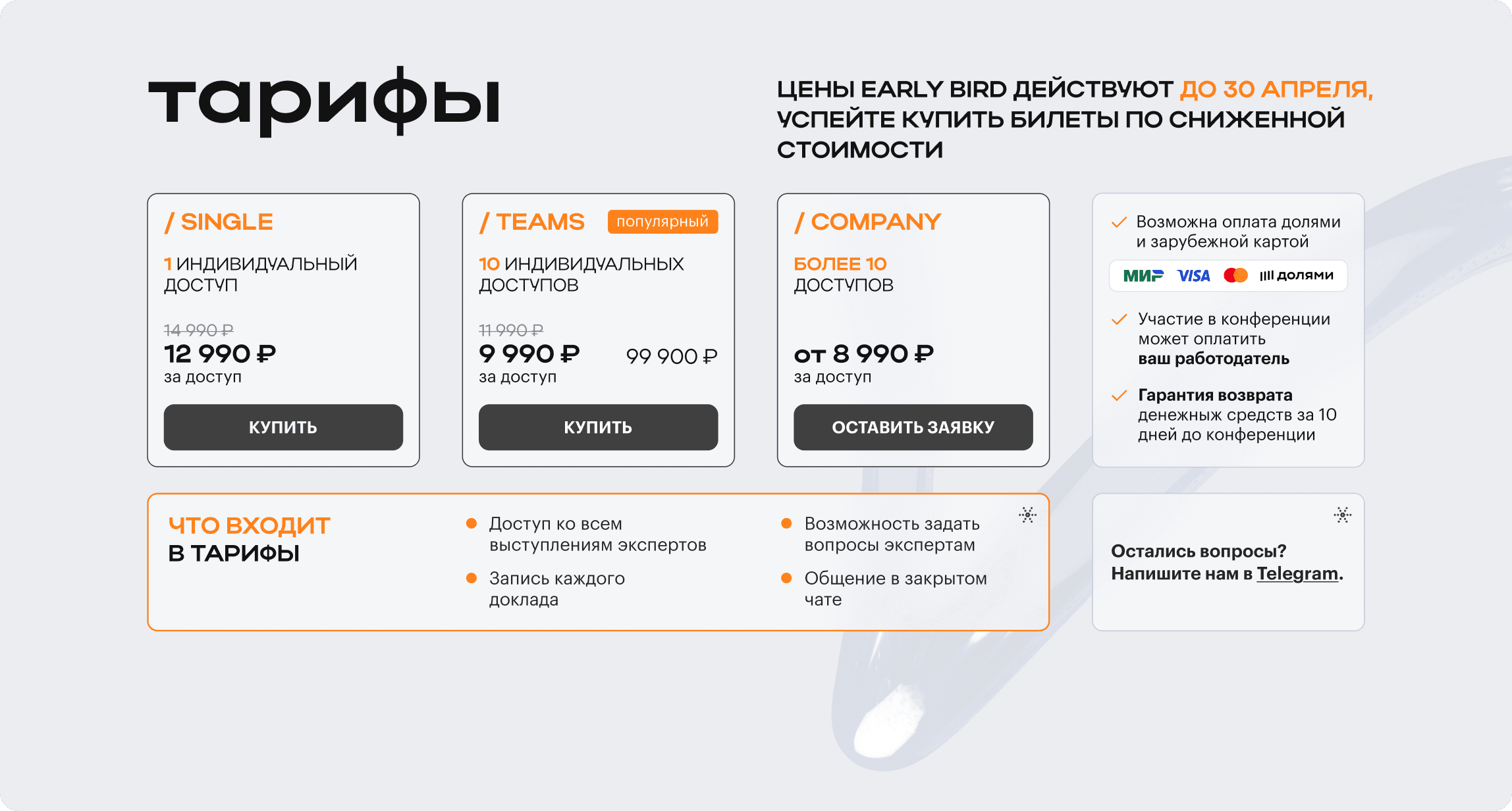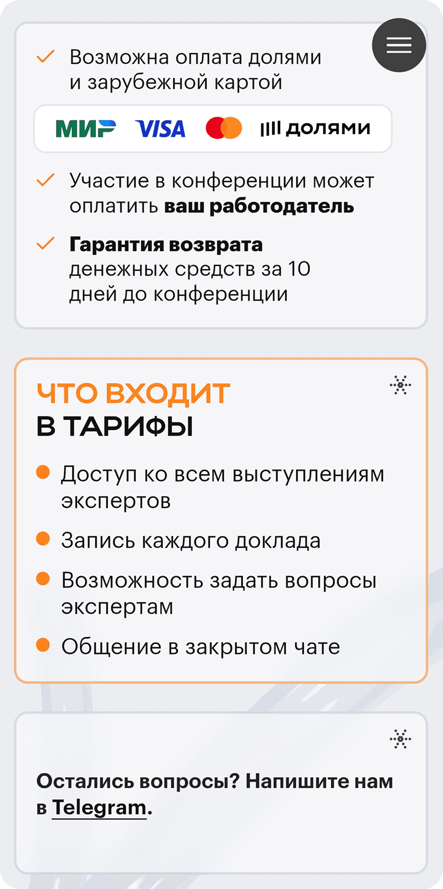 1/ Плохо считывается вариативность оплат — долями, зарубежной картой, через работодателя.