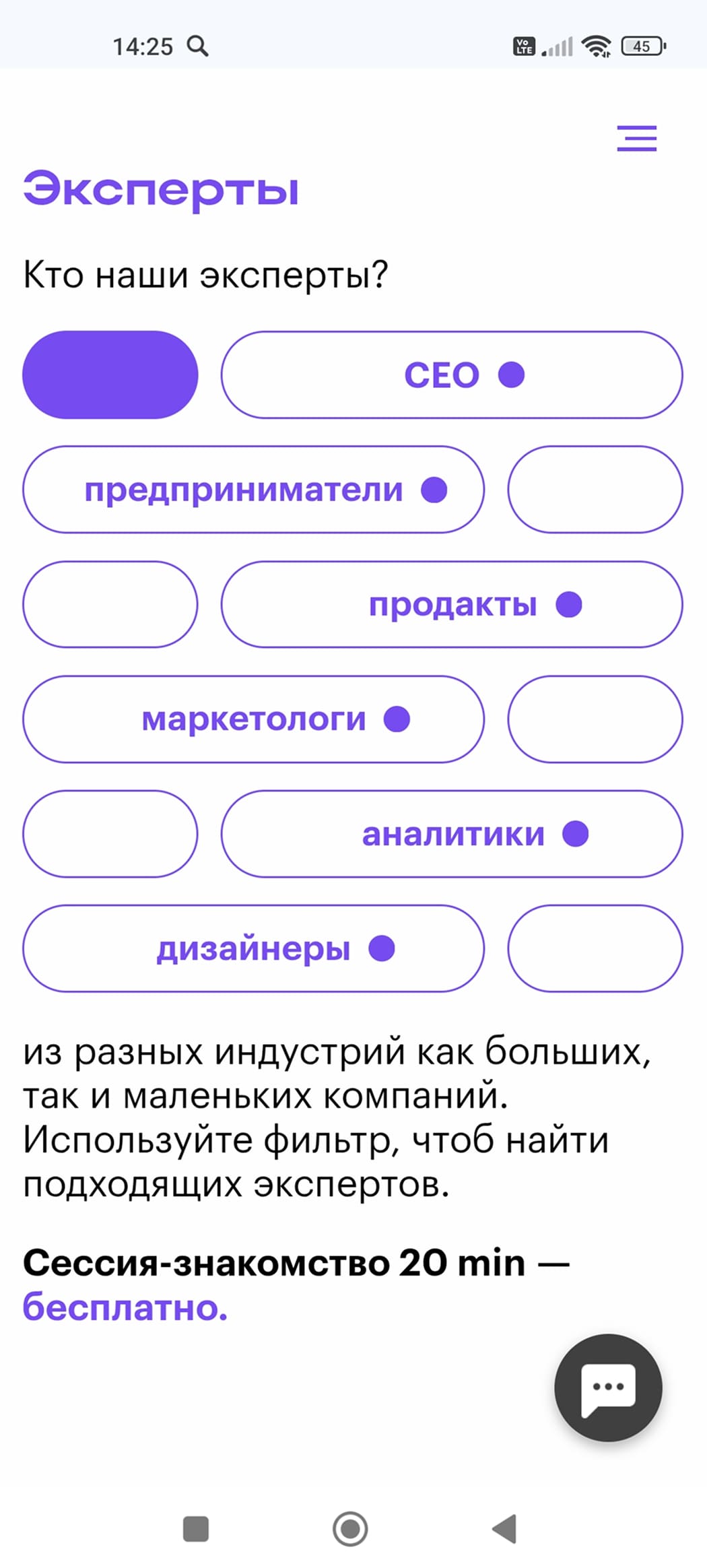 с карточками экспертов, простой фильтрацией и функцией записи