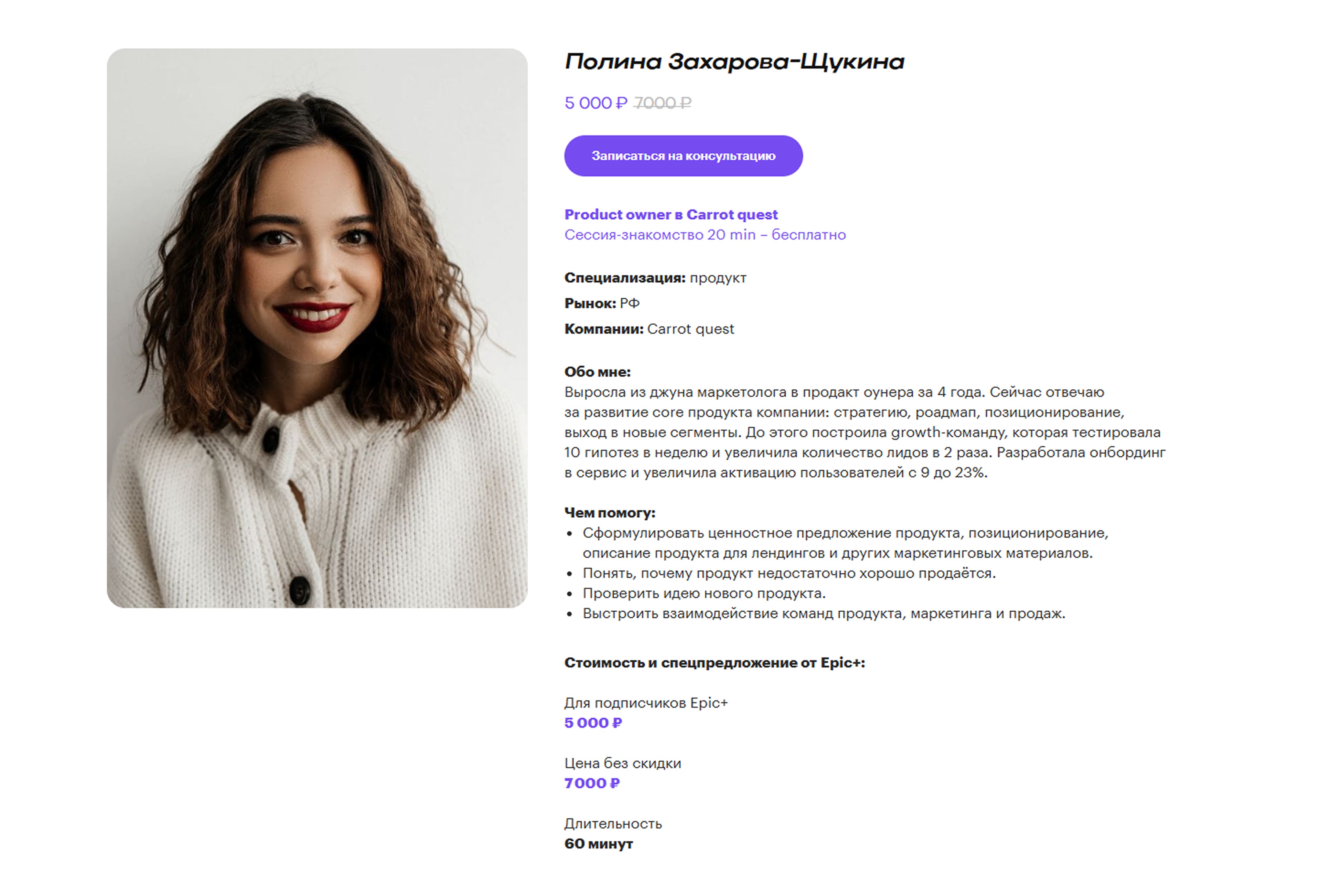 к ментору. Это новый продукт внутри подписки Epic Growth, направленный на повышение ее ценности в глазах пользователей.